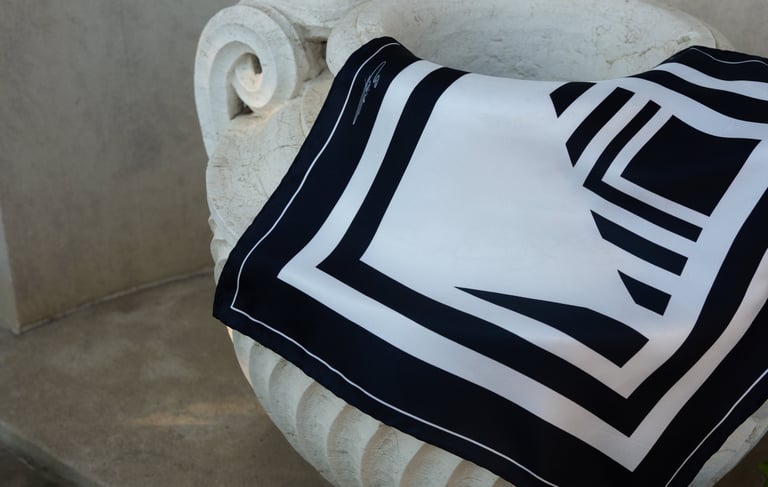 Created a line of 100% organic silk scarves featuring geometric compositions, inspired by the translation of musical rhythm and structure into visual form. The collection was conceived and directed with a focus on pattern, composition and the dialogue between form and movement. Each piece was crafted in the historic silk city of Como, Italy, with hems hand-rolled by skilled artisans, reflecting meticulous attention to detail and a dedication to the traditions of Italian craftsmanship.